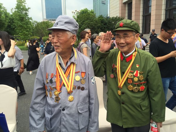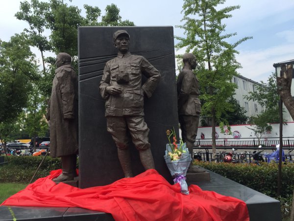 下午时分,偌大的广场上,来自省人大、省委宣传部、省文联的党员、干部、职工,以及94岁的新四军老战士陆坚、92岁的新四军老战士郝龙清、原浙东新四军司令员何克希之女何竟生、抗战烈士吕公良之女吕荷雨等,与社会各界人士一起,聚集在武林广场举行”抗战英烈”雕塑落成揭幕仪式,人们纷纷向”抗战英烈”敬献了鲜花,共同纪念”七七事变”81周年,弘扬爱国主义精神。