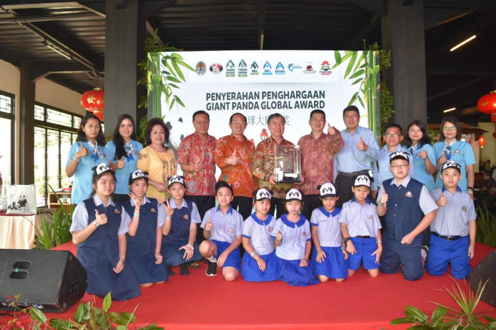 一是印尼莎华丽野生动物园董事长蔡亚声荣获”2017度关怀全球大熊猫人文奖”. 二是侍养在印尼野生动物园里的由中国政府赠送给印尼政府的雄性大熊猫 – 采淘荣获”中国境外最受欢迎的大熊猫银质奖”.