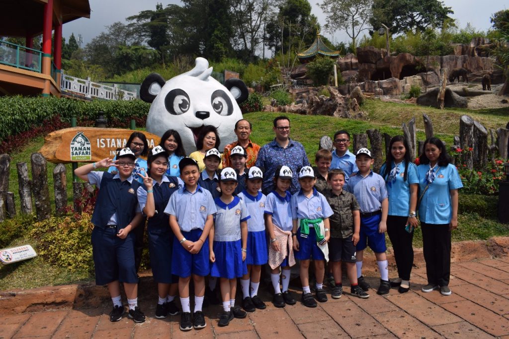 场面非常隆重, 热闹非凡, 仪式结束后, 蔡亚声邀巴中三语学校代表及师生合影留念, 用过中餐后, 筹委人员带领巴中三语学校代表及师生参观大熊猫采淘和湖春, 后又带领大家坐专车参观野生动物, 很多珍稀的动物在这里得到了精心的保护及赡养, 个个肥胖又精神饱满, 这证明印尼莎华丽野生动物园的成功.