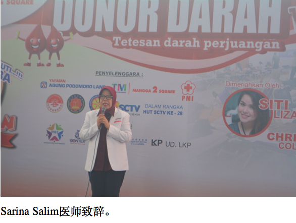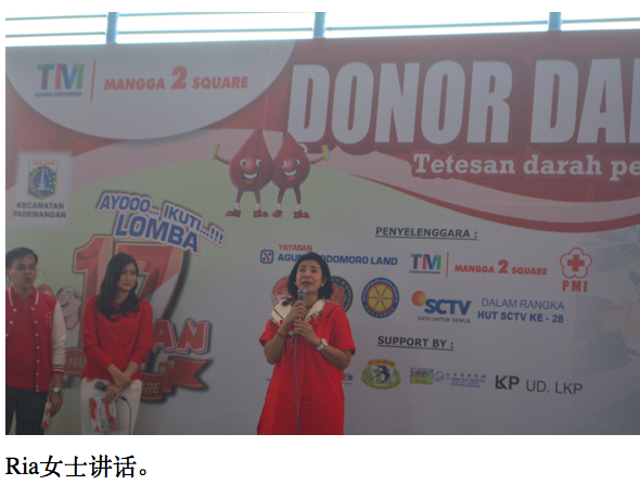 雅加达客联主席张和然、SCTV代表Abbas Yahya、印尼红十字会代表Sarina Salim医师、Mangga Dua Square商场代表Ria女士、Pademangan镇长Mumu Mujtahid等莅临。
