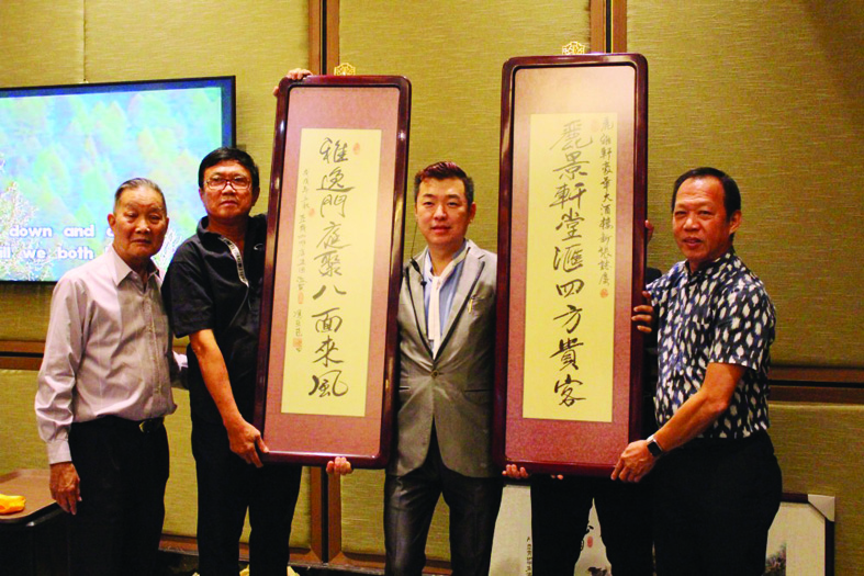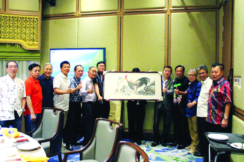 【本报讯】华社知名伍耀辉为首的AKG(AjiKopitiamGroup)于21日晚上7时,在雅加达哈炎乌禄大街HXC大厦3楼丽雅轩(LeePalace)大酒家举行联欢聚会,藉以作书画家冯亚苞的国画及墨宝书法的赠送的接交仪式,由AKG赠方伍耀辉、陈克强、许再山为代表与丽雅轩大酒家董事总经理卢国权之间的接交进行。