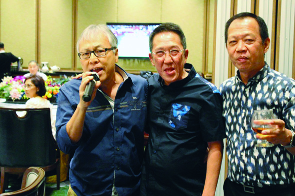 AKG这次的联欢聚会,特别嘉宾有来自占碑市的我国槟榔大王陈克强的出席。还有,歌唱稍有名堂,素有BeeGees歌喉的萧明豹、精通中英文歌曲的林耀福,当然还有富具歌唱声像根底的老大伍耀辉本身等,大家借助于三分酒意,顺其自然地迎合高唱中英、闽南各个精彩歌曲,把联欢会推上更高层次。欢乐异常!
