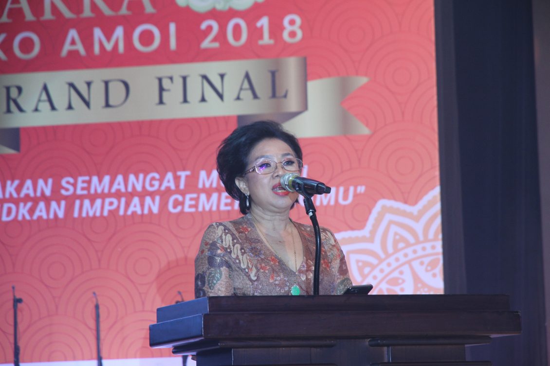 叶联礼总主席致辞,他说印尼有两千万华人,而客家人占了八百万,分布在印尼各地。印尼客属联谊总会在全国有五十几个分会,组织要有发展,必须培养人才,因此我们希望有更多年轻人投身在客家组织中,并接棒成为我们的接班人。2016年我们举办了首届客家阿哥阿妹形象大使选秀大赛,吸引了很多年轻人参加,从中涌现的年轻人才,积极地投入我们的组织中。为了让更多的年轻人继承先辈的事业,发掘更多的优秀人才,第二届的印尼客家阿哥阿妹形象大使选秀赛,通过决议,由雅加达客属联谊会承办。