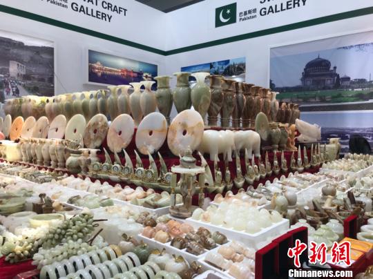 来自巴基斯坦的参展商Moni此次带来了上百件石材工艺品,有玉石花瓶、手镯、石灯座等。Moni告诉记者,来中国的目的不仅是参展,还想寻找合作伙伴,把更多巴基斯坦的石材工艺品卖到中国,并把中国的产品卖到自己的国家。