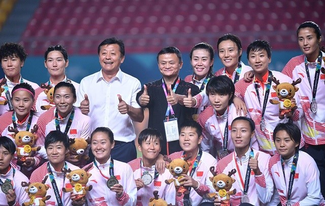 据虎扑网 31 日的报道,当天的比赛,中国女足在亚运会女足决赛中 0-1 不敌日本女足收获亚军,赛后,马云与中国足协党委书记杜兆才来到现场为女足颁奖。马云在离开现场时的采访中被问及未来是否可能投资女足,他回答说:“必须的。”