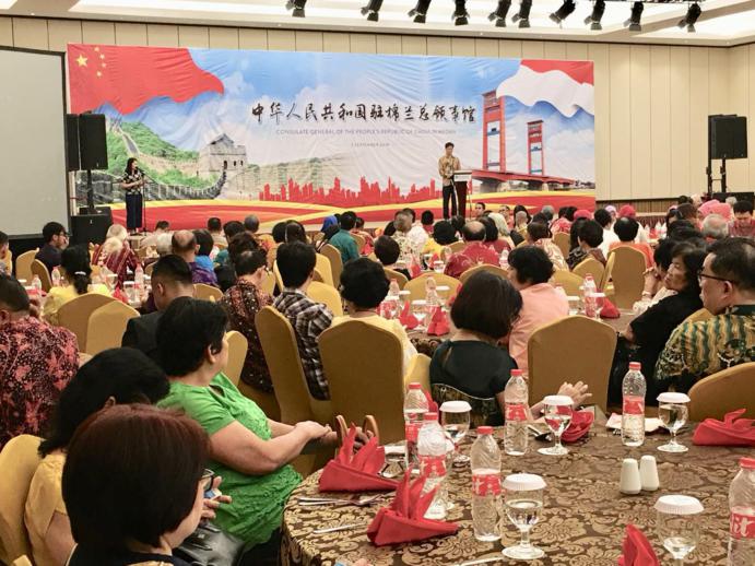 十几天前,我们刚刚和印尼朋友一起,庆祝印尼独立73周年。再过不到一个月,就是中华人民共和国成立69周年。中华人民共和国的成立和印度尼西亚共和国的独立,都是1940年代后期亚洲各国人民争取民族解放的重大历史事件。我要借此机会,向我的祖国祝福,祝我的祖国日益繁荣昌盛!我也要向在巨港和整个南苏门答腊省的中资企业员工、中国汉语教师和华侨致以节日的祝贺。他们是中国和印尼友好关系的桥梁和使者,为促进中印尼友好合作、增进中印尼两国人民的友谊作出了很大贡献。