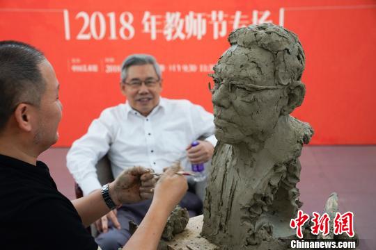 中新网北京9月10日电 (记者 应妮)今天是第34个教师节。中国美术馆10日在馆内艺术教育空间举行了“为新时代人物塑像:2018年教师节专场”雕塑工作坊活动,邀请雕塑家现场为优秀教师代表塑像。