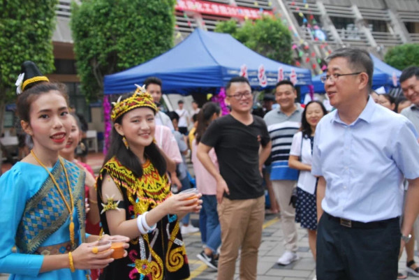 报到点前,身着民族特色服装的学生欢迎着到来的新生们;家长休息席上,境外生同学为新生和家长精心准备了泰国奶茶、甜品等东南亚特色小吃,展现了华文学院国际大家庭浓郁的异域风情特色。(文:黄乌密)