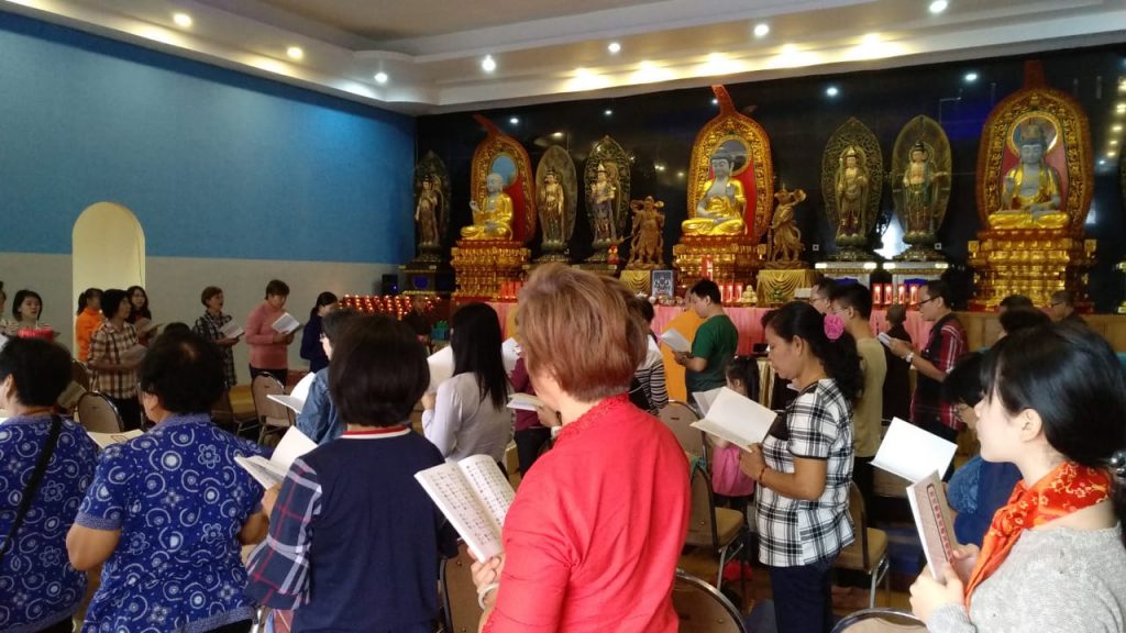 (本山訊)一年一度慶祝三次觀音誕,全球漢傳佛教以不同方式盛大慶祝紀念大會。印尼棉蘭千佛寺於10月25至27日,農曆九月十七至十九日,每天下午普佛拜願。農曆十九日上午由僧衆帶領頂禮大悲寳懺。農曆二十日,逢星期天,是日,超過一百多人,以愛心關懷捐獻抽血給予紅十字會。