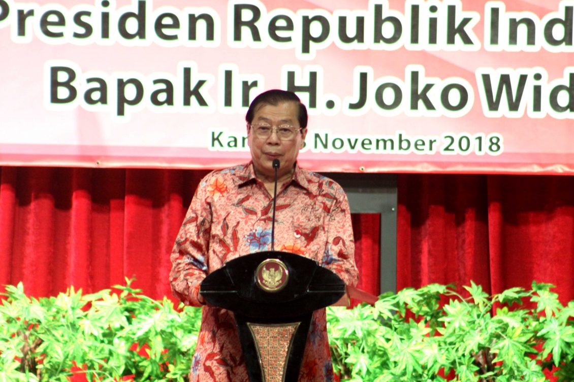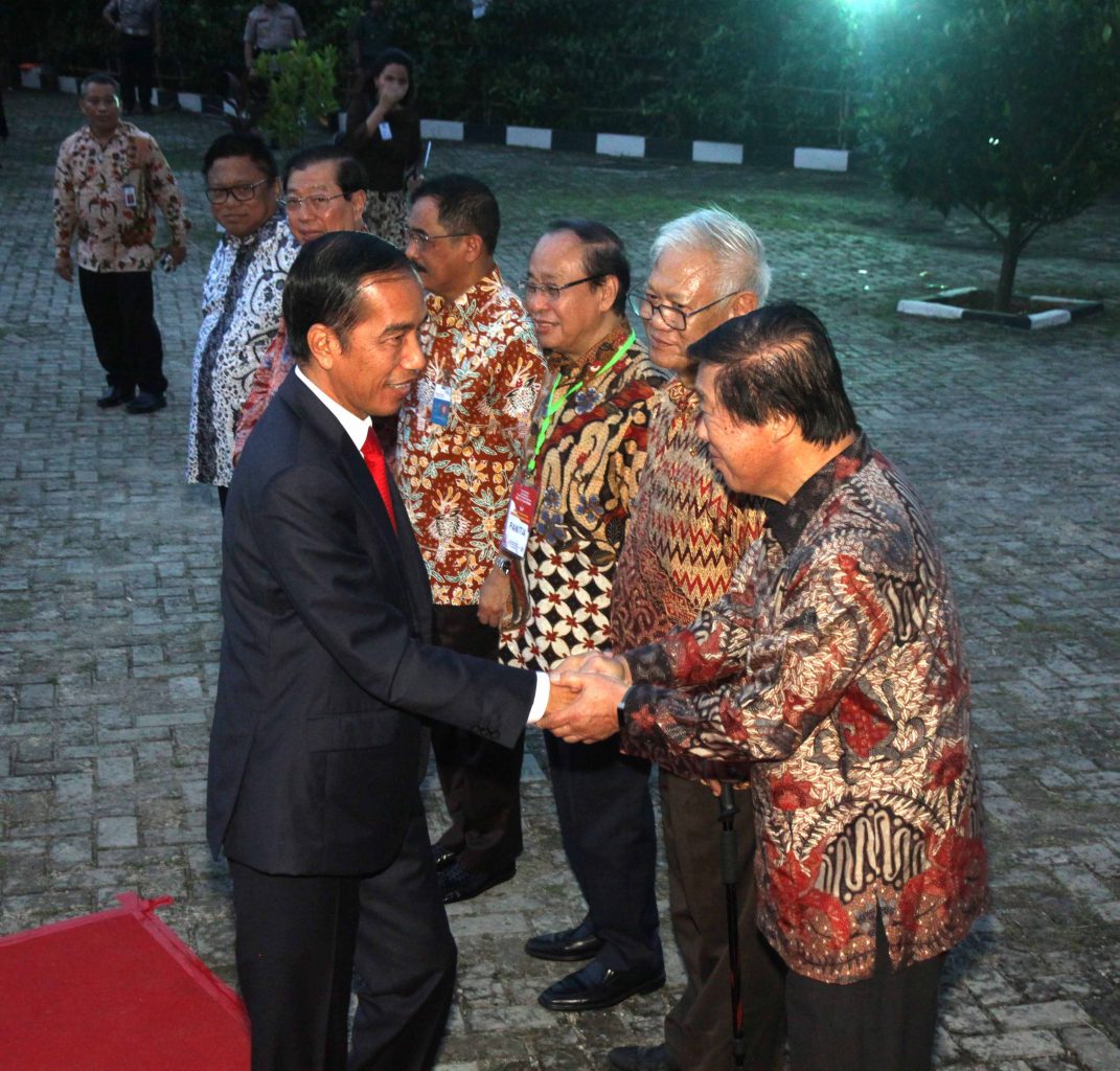 叶联礼总主席致辞,他对佐科维总统百忙中亲临客家博物馆表示热烈欢迎并致予万分谢意,还不忘感谢Oesman Sapta Odang 所作的努力,使这次印尼客联总会领导及乡亲与总统的恳亲联欢得于实现。