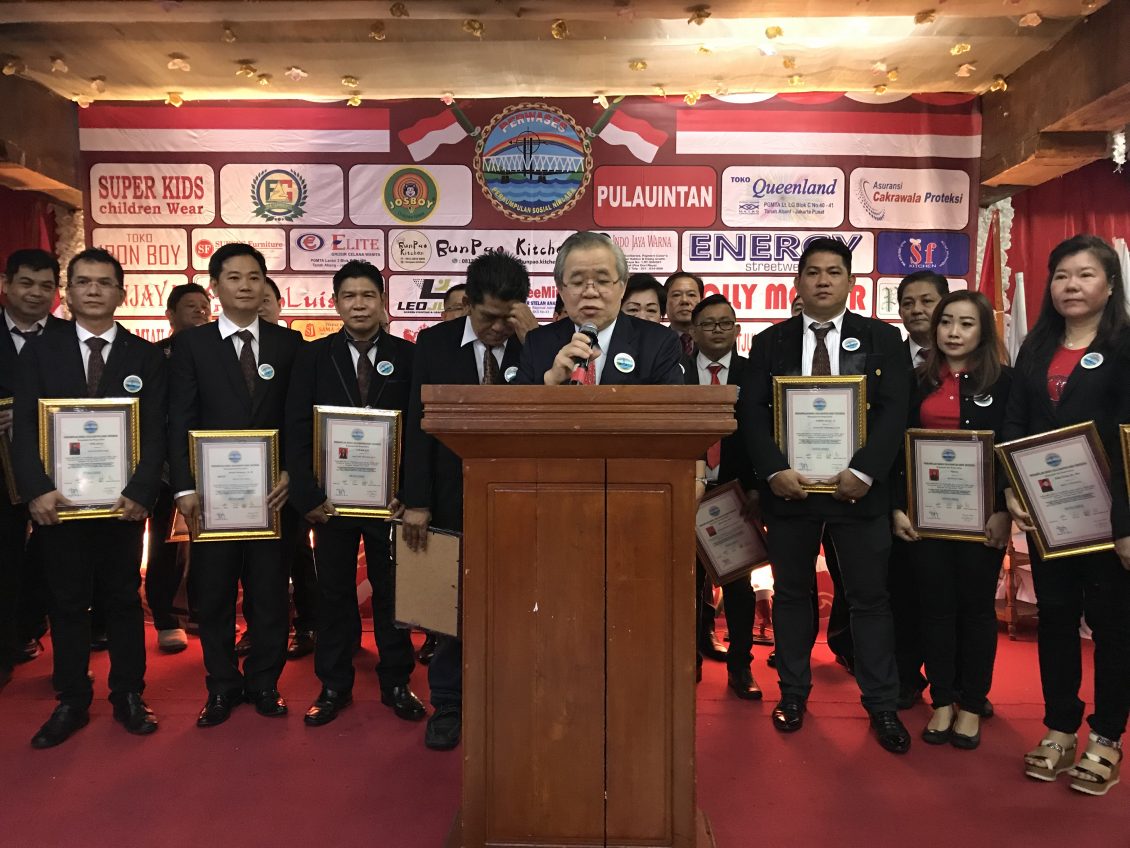 必利达学校董事长饶兴生也应邀发表讲话。他很高兴能参加当晚的理事就职盛会。他说,不少原西加里曼丹的必利达一校学生获得了中国校方的助学支持;这次必利达学校获得了62名留学生到中国学习语言文化和科技,4年后他们将完成学业,回到印尼为印尼的国家建设贡献他们的力量。