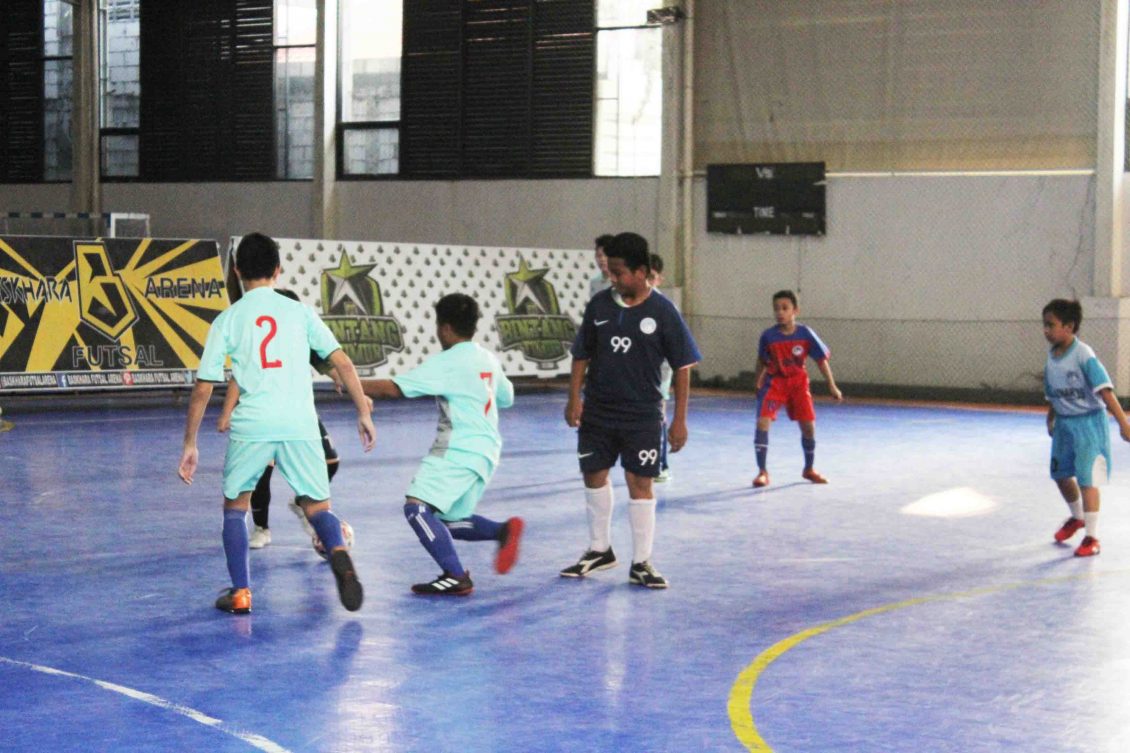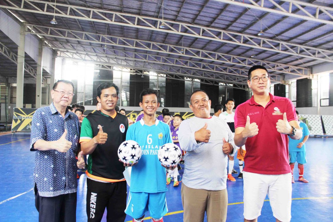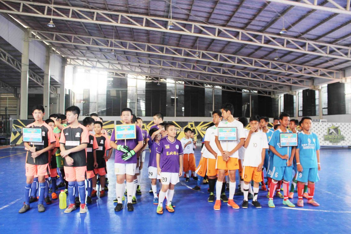 接着下午3点左右, 江门市小型足球协会和小太阳室内足球团队前往Bhaskara室内球场。球场内已等候着泗水Raden Paku 和泗水阿拉扎小学和初中足球团队。所有足球团队,教练和评委在比赛开始在球场前进行小仪式。