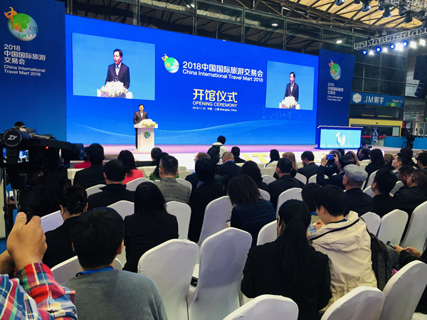 中国文化和旅游部部领导于群、上海市人民政府副市长陈群、欧盟委员会旅游、新兴和创意产业部主任阿塔纳索普卢出席开幕式并致辞。他们强调,旅交会规模不断扩大,专业化和国际化水平不断提高,并已成为深化国际旅游合作、促进中国融入世界的重要平台,为促进旅游业的高质量发展提供了重要机遇。旅游在传播文明、交流文化、增进友谊方面发挥着重要作用。预祝2018中国国际旅游交易会年取得圆满成功,不断推进文化、旅游等领域的国际交流与合作。