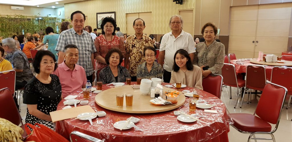老平银会新主席过后与理事们,其中有 郭菲英,丘威秀,曾缙云,郭良义,绮美来,徐国忠,古秀荣,古秀芳,廖芝万,陈基和, 郭奕义,陈枢贵, 彭昌文, 何岱玲,赖伟良。组长有 :郭杏英,李文龙及校友们上台集体拍照留念。