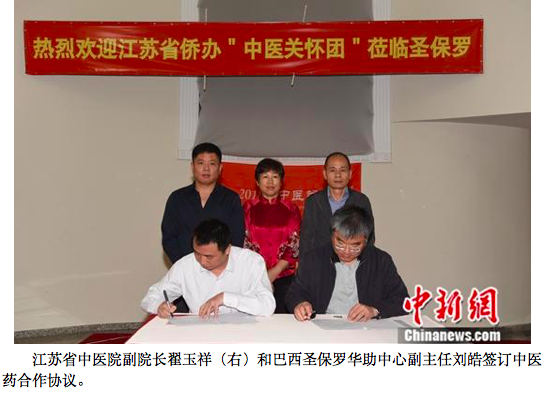 当天,江苏省中医院和巴西圣保罗华助中心签订中医药合作协议,将在巴西建设“医疗与教学联合”项目,开展中医药远程医疗、教学合作,为巴西中医药从业人员提供中医药培训等。