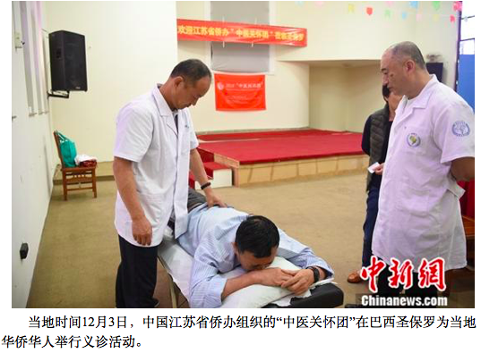 中新社圣保罗12月3日电 (记者 莫成雄)当地时间12月3日,中国江苏省侨办组织的“中医关怀团”在巴西圣保罗为当地华侨华人举行义诊活动。