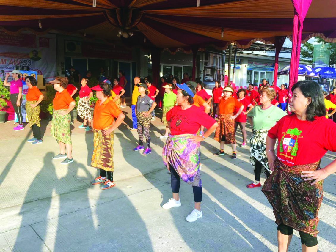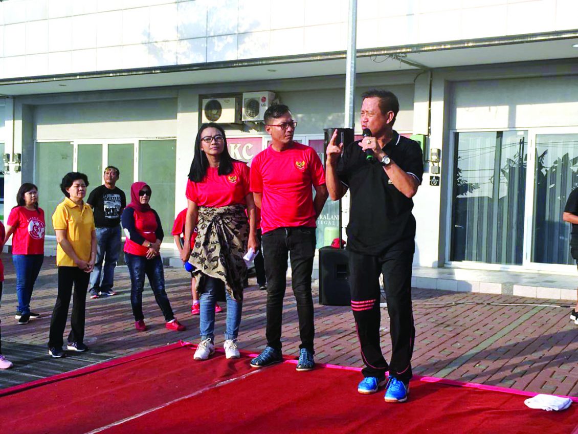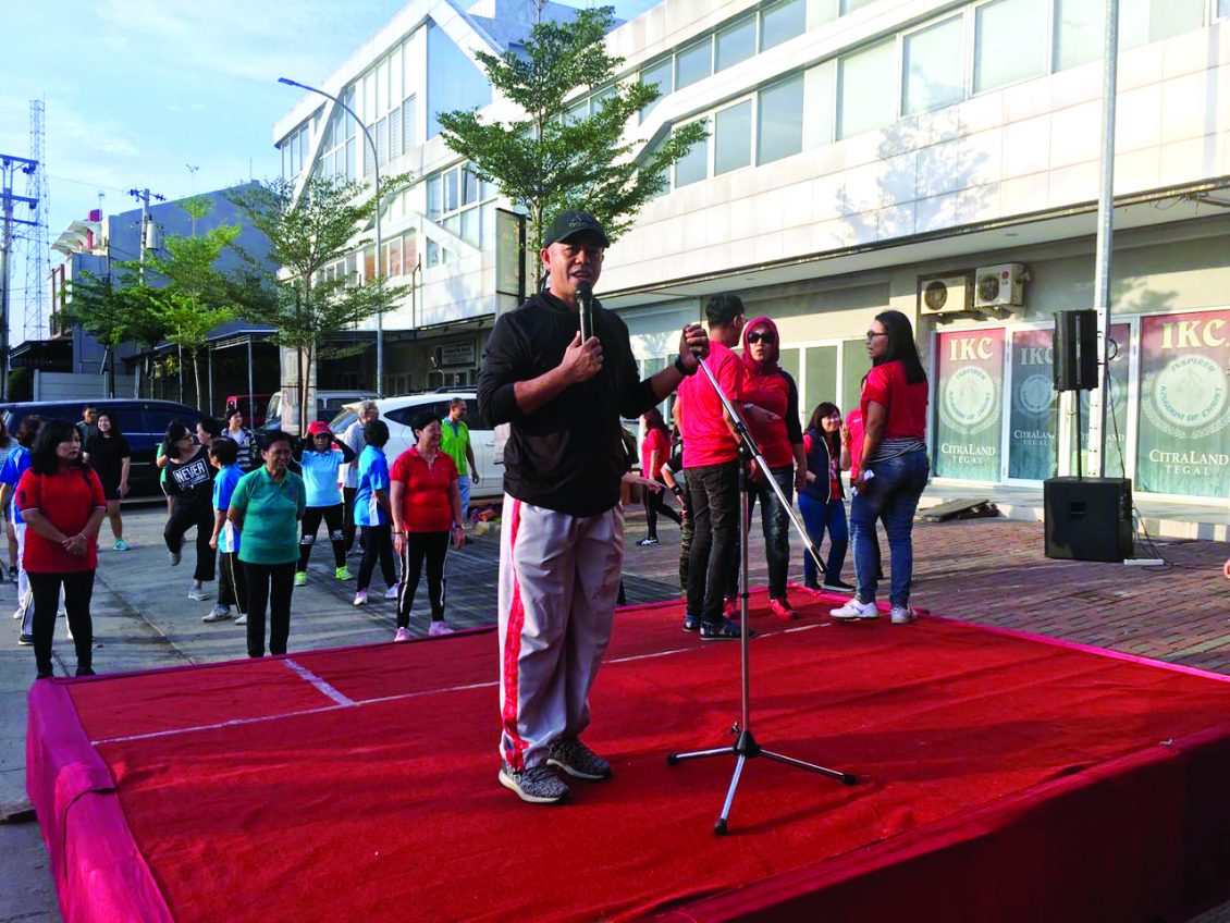 直葛市的数百名居民似乎填满了位于Jl Sipelem Ruko Alegro Plaza Tegal,从早上6点开始他们热情地等待黄庆吉的到来,他将带领AW S3体操抵达秘书处办公室的院子。 他将带领AW S3体操(健康,振奋,快乐)的创作。