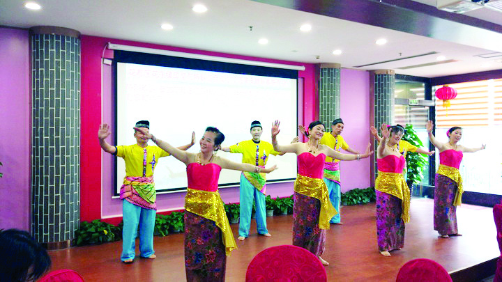 随后,花侨印联会文艺队为现场众多侨友奉献了热情奔放的『欢乐舞』、姿彩缤纷的『印尼爪哇舞』、亲切融合的『朋友来相聚』和广场舞『大家乐』,陈琳秀侨友用印中双语独唱『美丽的梭罗河』,李明富来一个吉他独奏,刘永芳用叶片吹口哨演奏『夜莺』更获大家的热烈掌声和欢呼声!《广东侨友网》林斯浓和黄美娟也为大家表演了印尼双人舞『唯一的爱』。