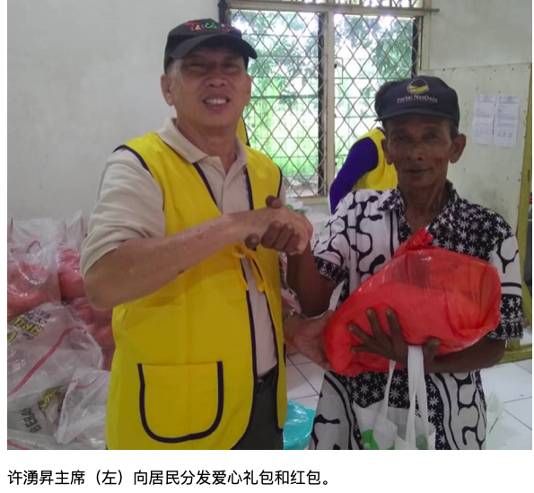 许湧昇主席在讲话中时表示、感谢该会热心乡亲们的大力支持和赞助,还有诸位理事的积极参与,使活动得以顺利进行。旨在帮助那些低收入的贫民减轻一点生活负担,希望通过类似活动,能为当地贫穷家庭减轻困境,让他们也欢欢喜喜愉快地度过新春佳节。