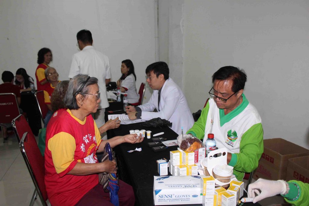 不仅是欢乐, 老人们也得到常规的体检,如检查血糖, 血压,和尿酸。 医生检查他们后, 也给他们药单提供免费药品。那些老人有序的排队进行免费体检。
