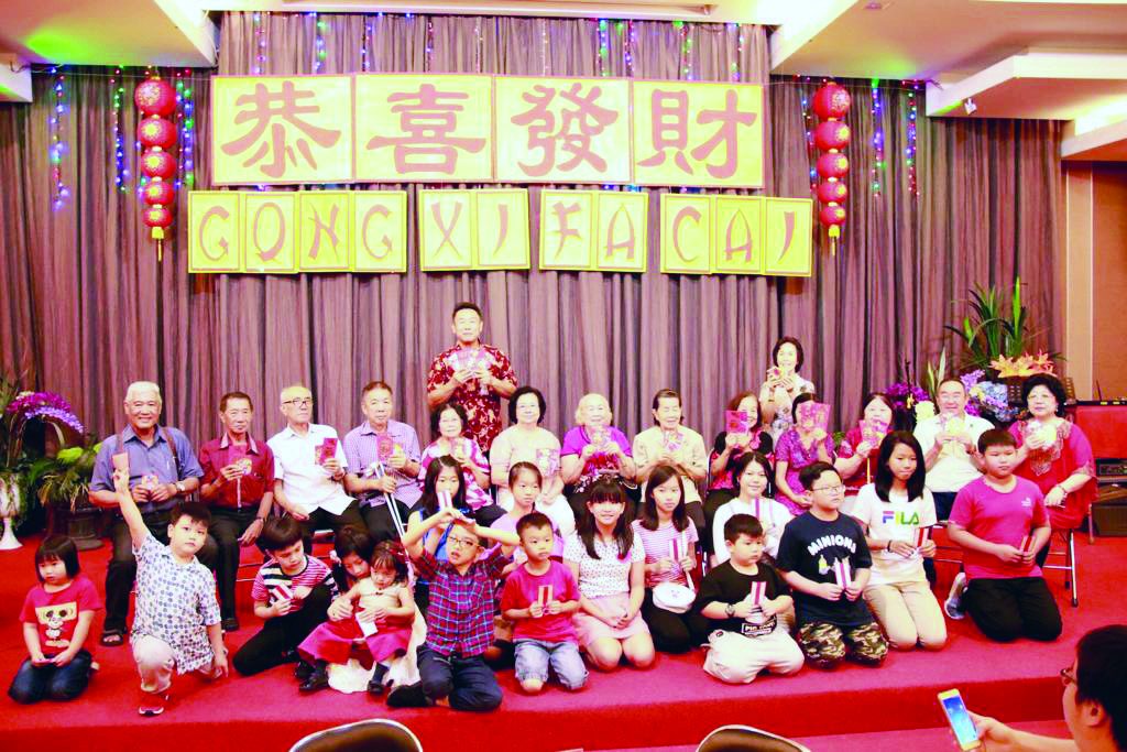 晚上七时, 郭良义宗长, 郭平宗长又假座新大旺酒楼宴请一百多位郭氏四房裔孙共进晚餐, 欢聚一堂,气氛和谐, 其乐融融. 用餐前, 郭良义宗长, 郭平宗长, 郭濂超夫人像往年一样, 为70岁以上的老人和15岁以下的孩子们分发己亥猪年红包.大吉大利, 万事如意, 愿老年人健康长寿, 愿孩子们健康成长.