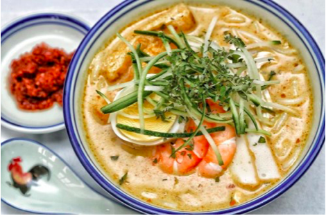 说起新加坡的道地美食,当然少不了娘惹风味。作为娘惹菜肴的代表,叻沙(Laksa)被选出。用叻沙叶与椰奶熬制浓香四溢的汤头,加入粗米粉、虾、鱼饼、鸡肉丝、芽菜、黄瓜等食材,自制辣椒参峇酱放一旁,食客可以按照个人口味自行添加。