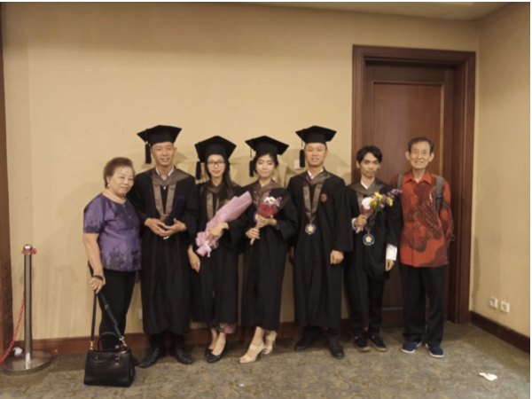 陈老师也在得到安溪福利基金会(安溪公会)廖扬宗领导与理事们的谅解与支持,同意借用大学生们上课的教室,让他们顺利上完大学所有未完的课程及顺利的完成了撰写毕业论文。2018年他们的论文都以优异的成绩考核答辩通过了,学校宣布他们六个人都准予毕业。毕业典礼完毕他们冲出来直奔家长及两位老师处,我们把手执的鲜花给他们握着他们的手恭喜、恭喜……幸福的、晶莹的两行热泪沿着双颊缓缓流下来,他们终于毕业了。(铭华提供;文图:忆蕾)