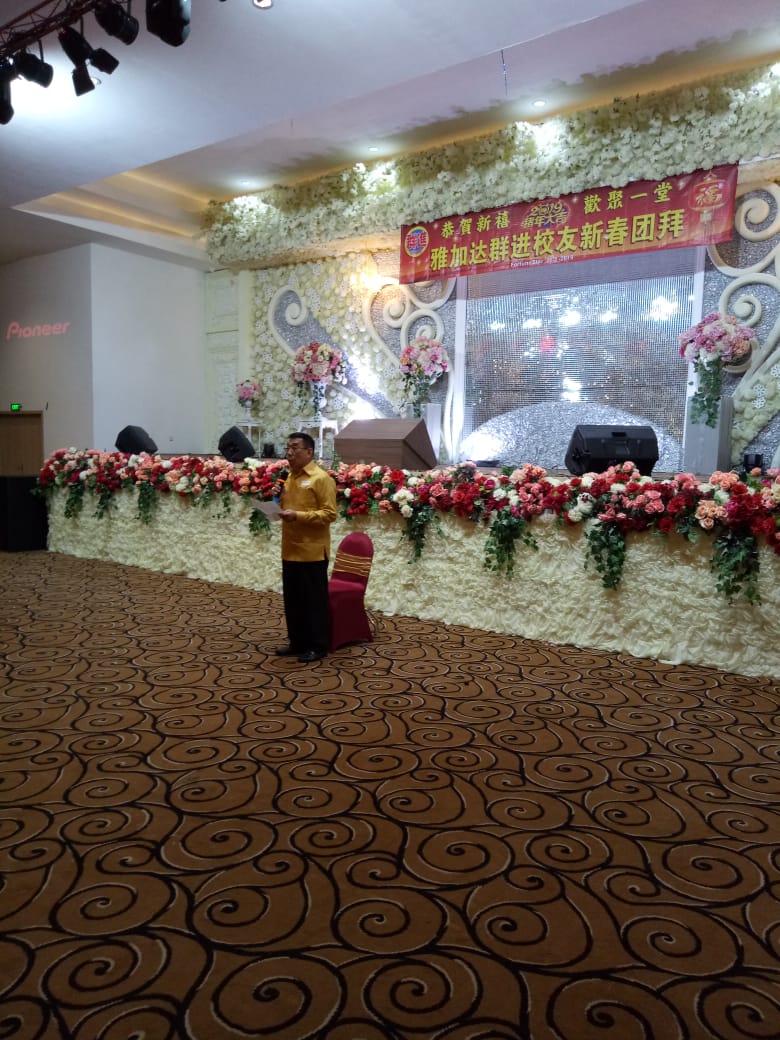 (本报讯)迎接新的一年,迎来新的希望。2019年2月25日,正逢世界各地华人普天同庆华族传统节日—一春节,群进校友会也不例外,假座JlKunlr 2号的Fortune Star 大酒楼,宴请20位老师们与2oo多位校友们齐聚—堂,共同庆贺,团拜。袁霓(印华作协主席)闻之,在工作繁忙中,也风尘仆仆地赶到了联欢礼堂,为了童少年的记忆,更为了要与阔别了多年尊敬的年迈的老师们互叙离情温馨旧梦,在联欢节目进行中她非常兴奋地上前与老师们在—起分享这欢乐的时刻,集体合影后,她向大家致词並恭祝老师们暮年晚景,幸福安乐!