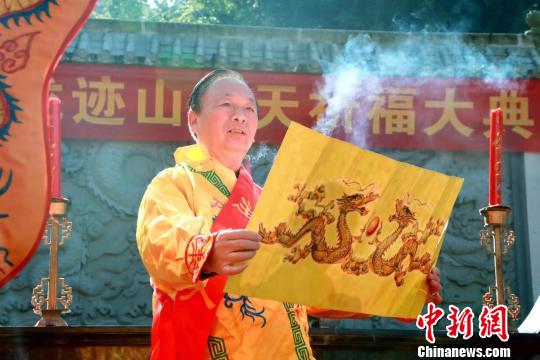 当天,随着礼炮和鼓号齐鸣,以“承天佑民广施福址”为主题的已亥年福建龙迹山祭天祈福文化节启幕。祭天祈福大典上,众人依古礼行三拜九叩礼,以表虔诚,并依次上香。