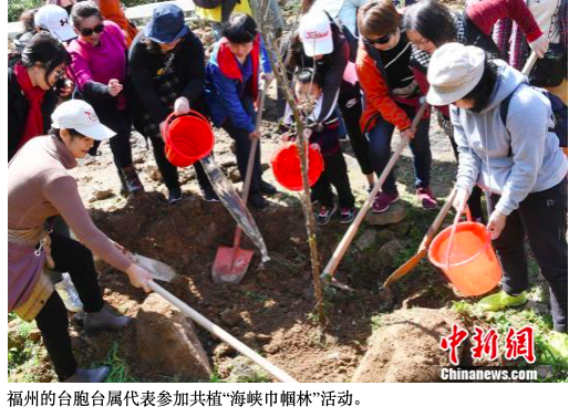 中新网福州3月12日电 (郑江洛)春到三月添新绿。12日,在福州市连江县江南乡梅洋村里,来自海峡两岸的姐妹们三五成群,填土种树,共同种下一片“海峡巾帼林”。