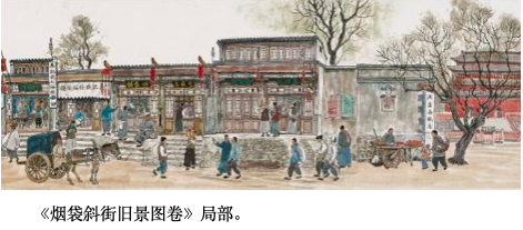 “我还画过一幅36米长卷《驼铃古道图》,说的是模式口。”何大齐说,“反复调查、核对绘画细节确实费精力,但我想用一种方式,把北京的民俗风情保留下来”。