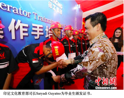 中新网雅加达3月15日电 (记者 林永传)中印尼教育领域合作再出新成果。15日,印尼首届旋挖钻机操作手培训班毕业典礼在首都雅加达郊外的一处施工工地举行。