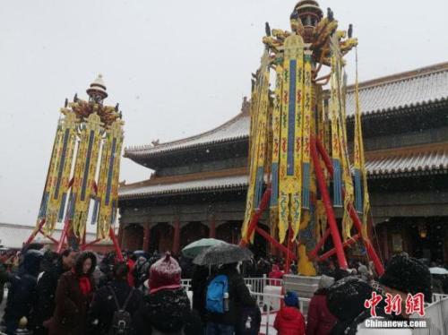 清代宫廷沿明代旧制,元旦(即现在的春节)前后要在乾清宫丹陛上下各立一对天灯和万寿灯,这曾是清代早中期过年最盛大的活动之一。但在1840年,由于西方列强的入侵,立天灯和万寿灯的习惯就结束了。今年,故宫博物院依据档案藏品研究成果复原制作“天灯”和“万寿灯”,再次把它们竖立起来。