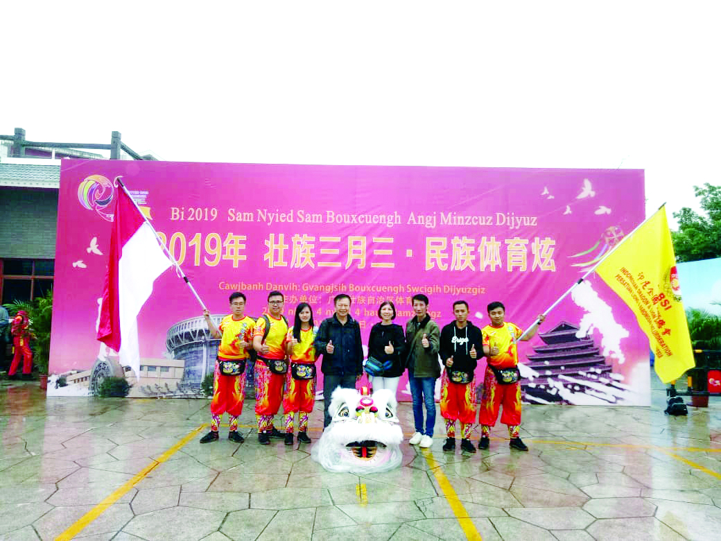 【本报讯】4月4日, 一年一度的“壮族三月三·八桂嘉年华”活动已在广西全区各地陆续展开,欢乐与春光洒满八桂大地,印尼全国龙狮总会(PLBSI)会长吴能彬博士4月2日率领印尼狮队赴广西南宁参加“壮族三月三·八桂嘉年华” 的中国-东盟狮王争霸赛。