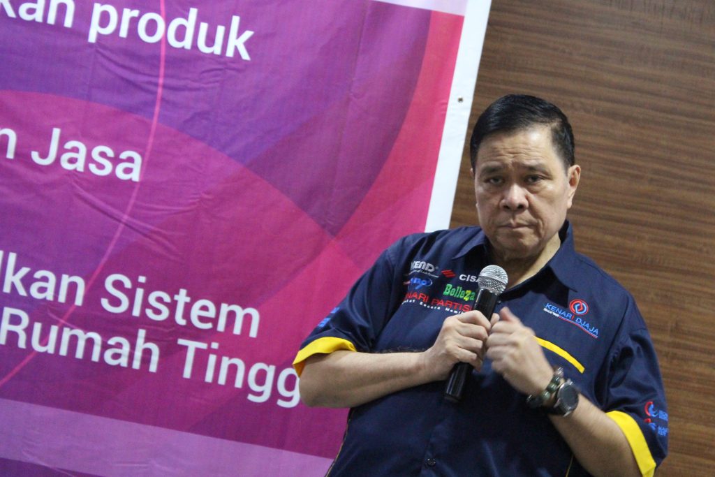 KenariDjaja集团董事总经理胡增文致词中感谢大家的一番努力成果,是集团54周年创业功绩,再接再厉,日后将继续为顾客做更好的服务。今天本集团除了领取这三项富具荣誉的业绩证书,也分发KenariDjaja集团亮丽的制服。希望大家会喜欢!