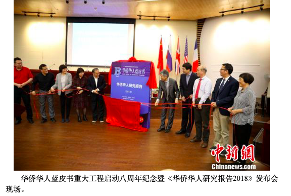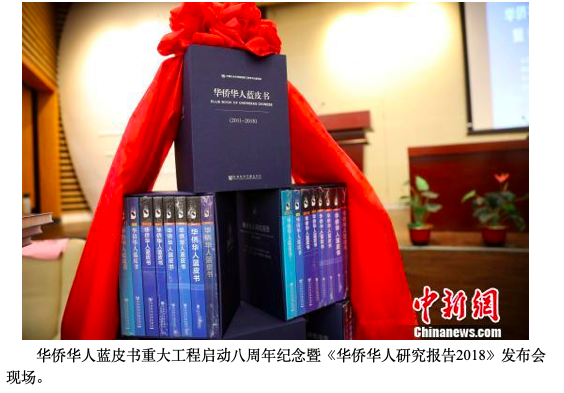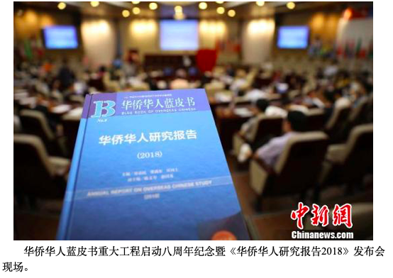 据悉,《华侨华人研究报告(2018)》内容涉及“华侨华人与中国形象”“华侨华人与文明交流”“华侨华人及其生存发展”和“华侨华人及法规政策”四个方面。主要探讨美国及东南亚华人对中华文化的看法、华侨华人在中华文化与其他文化交流中扮演的角色,华侨华人在海外的生存情况,探讨华侨华人在当地立足生存问题及对华侨权益的保护等问题。