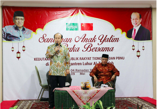 肖千大使在致辞中首先向印尼广大穆斯林致以斋月诚挚问候和良好祝愿。肖大使表示,在习近平主席和佐科总统的共同引领下,近年来中印尼关系不断走深走实,取得丰硕成果,步入发展快车道。两国元首迄今已7次会晤,就发展双边关系、深化战略对接达成系列重要共识。李克强总理去年5月访问印尼,为两国务实合作注入新动力。卡拉副总统不久前赴华出席第二届“一带一路”国际合作高峰论坛,两国签署“区域综合经济走廊”建设合作规划等重要合作文件,开启了中印尼共建“一带一路”倡议和“全球海洋支点”构想的新征程。