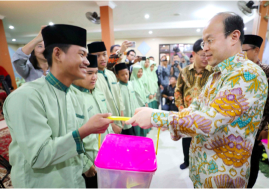 肖大使向经学院学生代表捐赠斋月礼包,向同学们致以斋月祝福,勉励他们刻苦学习,将来为印尼国家建设和中印尼关系发展多做贡献。