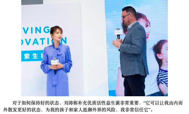 中新网北京5月10日电 9日,演员刘涛现身北京,出席澳大利亚益生菌品牌益倍适Life-Space发布会,由于该品牌主打益生菌,刘涛表示,自己也是忠实用户。