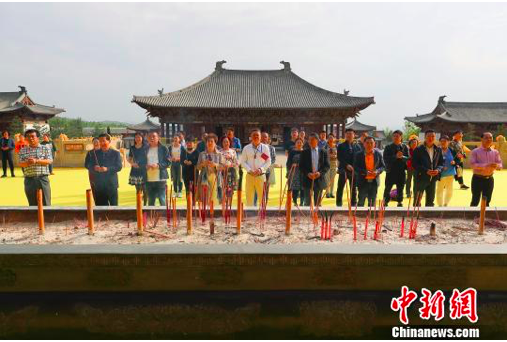 中新网晋城5月14日电 (作者 杨杰英)“神农炎帝始祖华夏,海外华侨华人、台湾同胞回到‘炎帝故里’寻根,是大家共同的愿望。我们是一个大家庭的成员,血浓于水,有这种亲情,就有认同感。我们要让更多海外华侨华人找到‘家’,记住我们的‘根’。”老挝中国总商会副会长、老挝吉达蓬集团公司副董事长姚勇14日在“炎帝故里”山西晋城高平的“炎帝陵”虔诚祭拜,并向当地民众了解祭祀炎帝的习俗。