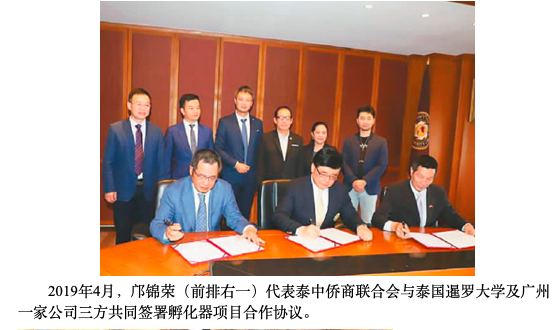 邝锦荣说:“华侨华人在促进中国与亚洲及世界各国文明交流互鉴中发挥着桥梁纽带作用。我所在的泰中侨商联合会和泰中文化产业集团,从2018年下半年开始布局参与大湾区建设,计划在广东省江门市兴建一座融合泰国文化元素,具有侨乡文化特色的‘泰中侨商文化产业园’。希望借这一产业园吸引泰国侨商、侨企,加强与侨乡江门的沟通与联系,共同推动中泰文化交流,让中华文明与东南亚文明相互交融,相互辉映。”