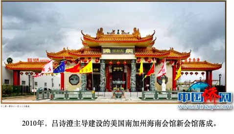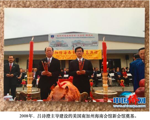吕诗澄告诉记者,上世纪七八十年代,移居美国南加州的海南人已达四万多人。海南籍乡亲们倡议成立南加州海南会馆,他就成为了会馆的主要领导成员之一。2005年,吕诗澄担任美国南加州海南会馆会长期间,促成了第九届世界海南乡团联谊大会在洛杉矶举行,来自世界各地数千名琼籍华侨华人共同见证了这一时刻。