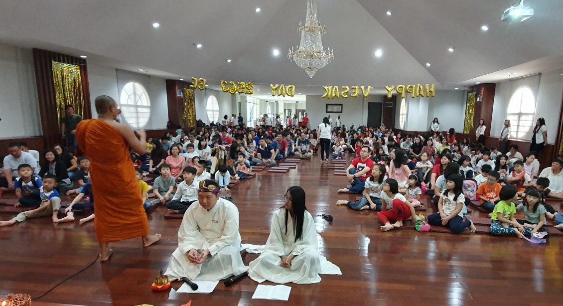 卫塞节是庆祝佛祖释迦穆尼佛三大出奇神圣佳日于一天即出生、成佛及涅槃,全世界佛教信徒都热烈庆祝这佳日。今年卫塞节Serpong广化一乘讲堂同样经已举办系列卫塞节活动,始于清洁打扫讲堂附近、法会、捐血及静坐一个星期,而最高潮是在19日,其中举行了迎接卫塞节最顶准的时刻、浴佛及卫塞节祈福。