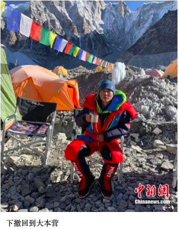 经过一周时间的高海拔训练后,他前往尼泊尔首都加德满都,并于11日乘坐直升飞机飞往海拔5380米的珠峰南坡大本营,等待“窗口期”的到来。