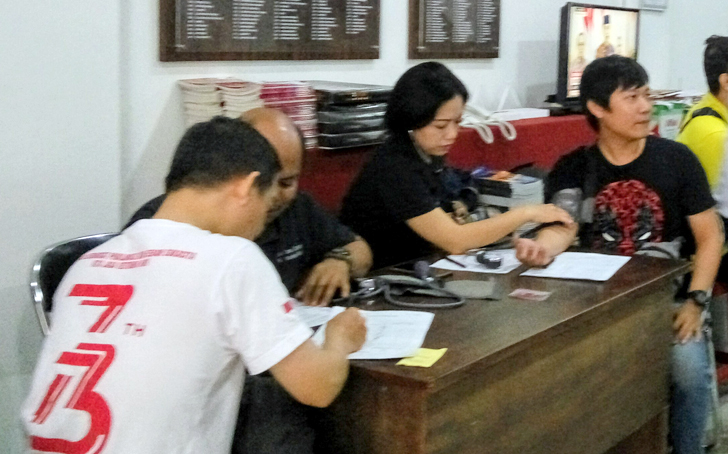 据悉巴厘省红十字会每年都会安排整年的全省捐血计划,红十字会每天都会委派两三组捐血单位接受捐血,一般每组接受五十名捐献者,每人捐血350毫升,他们有标准的设备和血库,可存放35天,因此要有严格的有效的接受新血液工作规划。