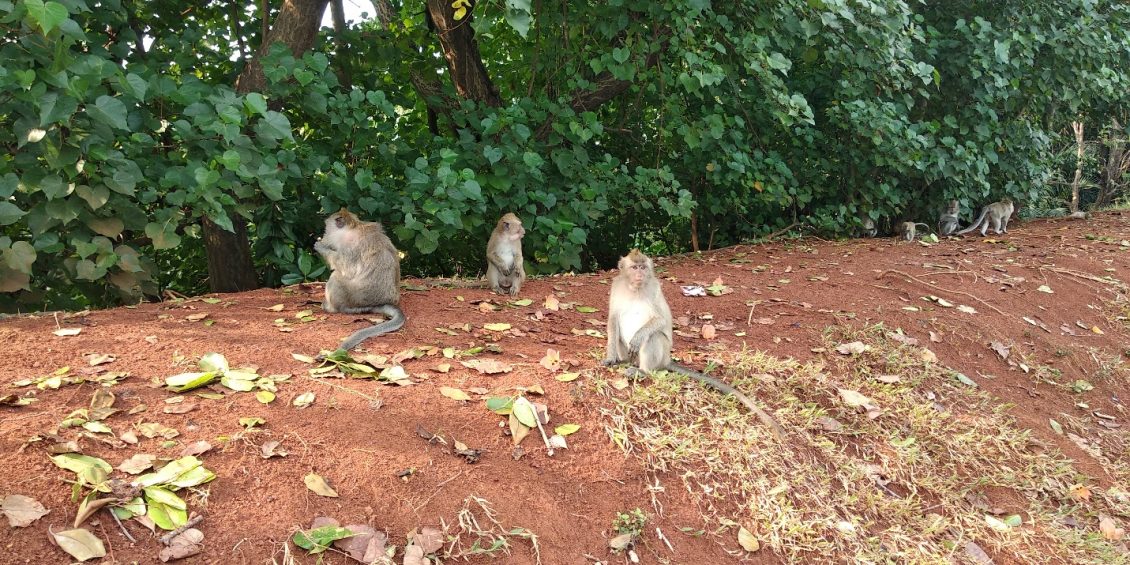 可惜当天不准入内,也只好跟随一群过佳节的友族,在保护区外看猴子群抢食物,穿梭在树丛中,打秋千,争吵……,也别有一番趣味呢!