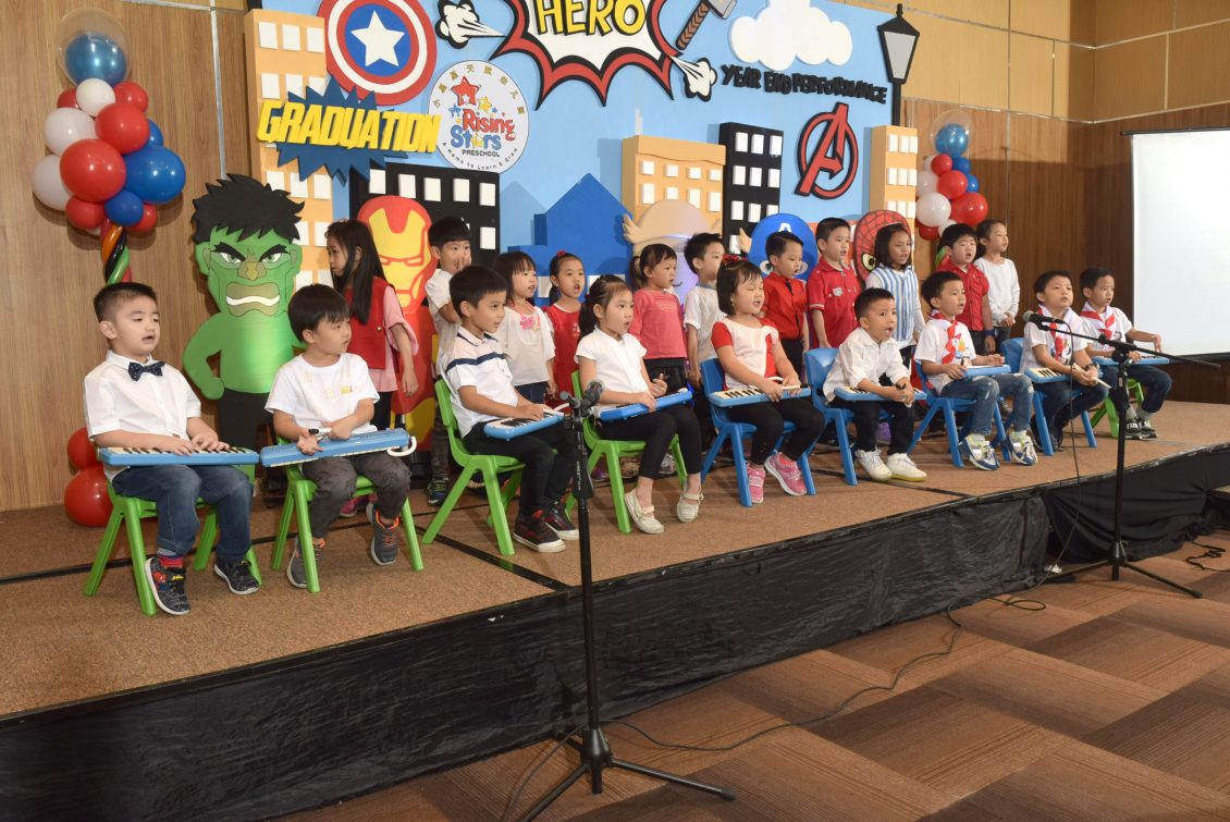 最后,幼儿B班学生表演英文歌“Hero”, 中文歌“大英雄”及印尼文歌“Guruku tersayang”.