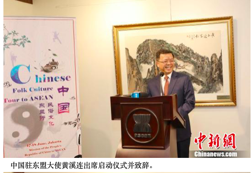 当天,“中国民俗文化东盟行”在东盟秘书处启动,30名来自北京民俗博物馆的艺术家以及中国人民大学、清华大学、闽南师范大学和台湾金门大学等高校的民俗文化学者展示了中国民俗文化魅力。