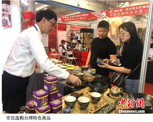 第二届长春·东北亚文化旅游产业博览会20日拉开帷幕,长春国际会展中心设置的12个大型展区中,其中一个展区为台湾商品专区,人流如织。