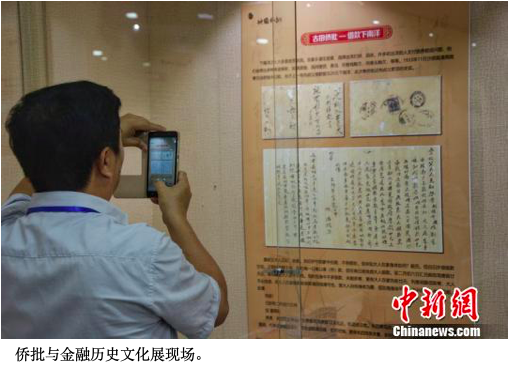 中新社漳州6月19日电 (龚雯)“侨批的背后,是勇于开拓、奋发进取的精神,是情系家国的大爱,传承着海丝文化。”中国人民银行漳州市中心支行行长林宏山19日在观看侨批与金融历史文化展时感慨道。